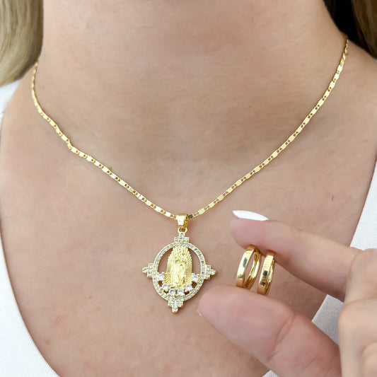 Cadena Tejido Escalera Plana 45cm + Virgen Guadalupe Talla